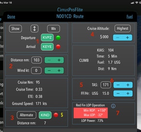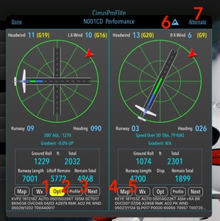 7. Alternate. If an alternate airport was selected in the Route Page, then touching this will show all performance data for that airport.