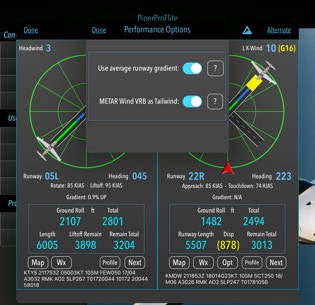 3. Animate Runway Selection. If “on” will spin the airplane around the available runways on the Performance Page when “Next” is selected.