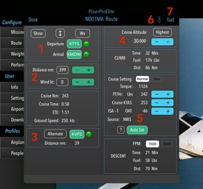 2. Cruise Distance. Set the minimum cruising distance for a given altitude. For example if the flight is short, selecting “Highest” on the Route page will pick an altitude so the cruise distance is not shorter than the value selected above.
