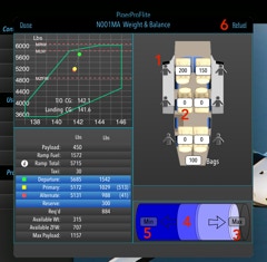 When touching the “Xfer” button, the airports will be loaded into the Route page and the payload configuration (passenger/baggage weights) will be loaded into the Weight & Balance page.