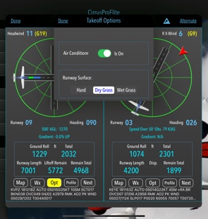 1. Opt. Some Cirrus aircraft are factory equip with air-conditioners. These will affect the take-off distance. Runway surface will also affect take-off distance.