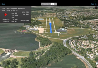 4. Show a Google Earth view of the current selected runway. Takeoff (Landing) Ground Roll and Total distances are shown. In the 3D view, only Total Distances are shown.
