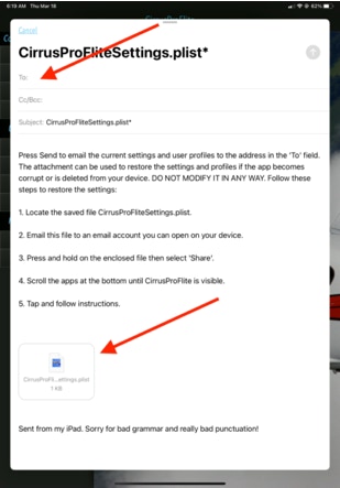 To restore profiles, simply email the file CirrusProFliteProfiles.plist to an email address you can open on your device.