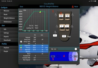 Profiles include aircraft model, BEW, Arm, and any other options as described in the Airplane section. Profiles also include Missions, People and most other options as set in the Settings section. It is highly recommended that Profiles are saved after the airplane is configured and regularly after that.