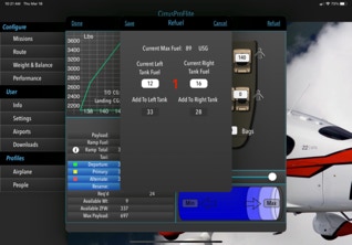3. Touching “Max” will automatically calculate the maximum fuel quantity while maintaining valid weights - ramp, takeoff and landing.