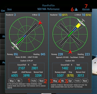 7. Alternate. If an alternate airport was selected in the Route Page, then touching this will show all performance data for that airport.