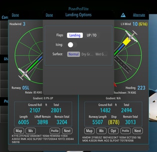 2. Select the “Next” runway. All performance values are recalculated.